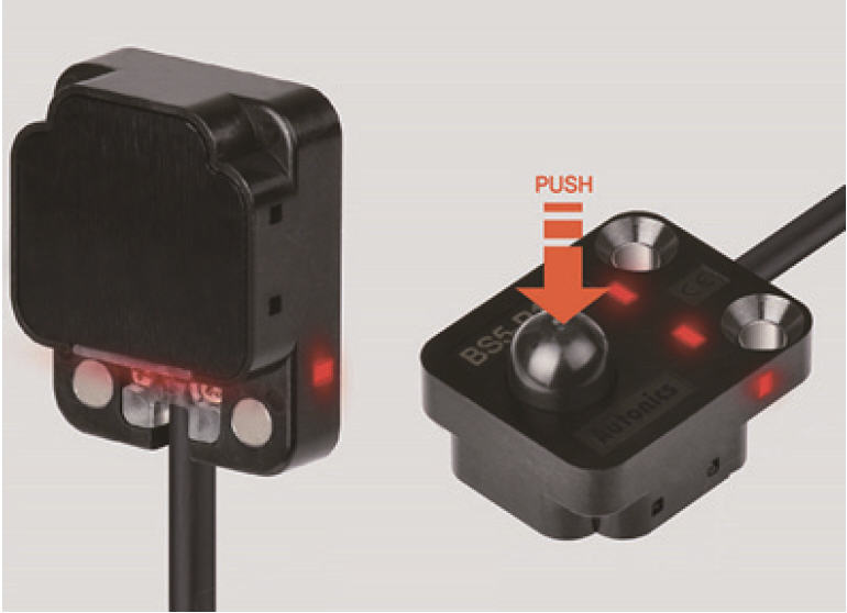 BS5-P 시리즈는 제품 내부의 투광/수광 소자를 사용한 광학식 검출 방식으로 최대 500만회의 기계적 수명이 보장되어 일반 누름식 스위치 대비 장수명이 가능하다.