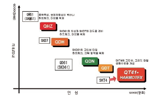 QD61는 알루미늄 압출 다이스, 플라스틱 사출 다이스, 다이캐스팅, 단조 다이스 등에 쓰인다. QDH는 알루미늄·동 압출 맨드렐장밀 다이스, 고 Si계 알루미늄 다이스, 베어링 성형 다이스, 알루미늄 압출 등의 용도로 쓰이며, SKD61의 인성보다 높은 고온 강도를 겸비했다. QDN은 대형 금형에 최적화된 제품이며, QT41는 열간 단조 프레스용 해머이다.