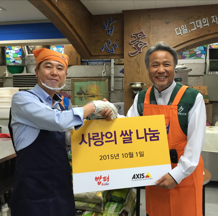 차세대 CCTV인 ‘네트워크 카메라’ 분야 전문업체인 엑시스커뮤니케이션즈(www.axis.com)는 밥퍼나눔운동본부에 쌀 330kg을 기증하고, 지난 10월 1일 밥퍼나눔운동에 직접 참여하여 무료급식봉사를 진행했다.