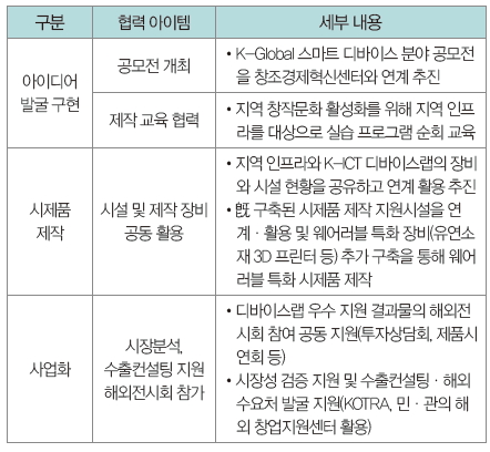 표 1. 스마트 디바이스 제작 인프라 연계 방안