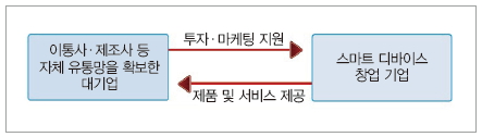 또한 기업의 지속성장을 위해 대기업(유통망 지원)과 창업기업(제품·서비스 개발) 간의 상호 네트워크를 구축하고(데모데이 등), 주요 글로벌 전시회(CES, MWC 등) 및 투자유치전 등을 지원하며, 전문 무역상사·코트라 등을 활용한 우수 스마트 디바이스 스타트업의 수출컨설팅 및 해외 수요처 발굴 등을 통해 해외투자 유치 및 판로개척 등을 적극 지원할 계획이다(그림 3).