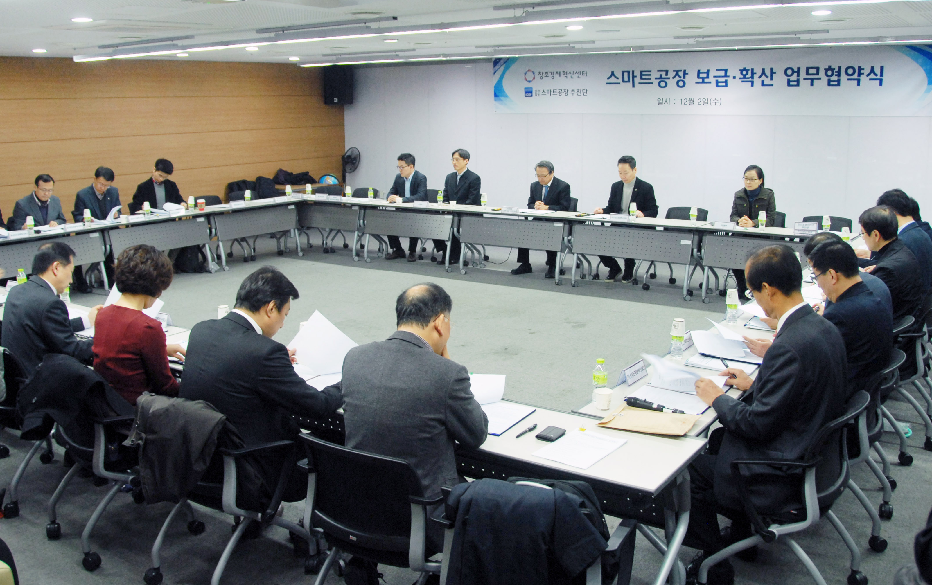 ‘제조업 혁신 3.0 전략’의 일환으로 진행 중인 지능형공장 보급․확산사업이 창조경제혁신센터를 중심으로 본격 확대 추진된다. 이를 위해 스마트공장 사업 총괄 관리기구인 ‘민관합동 스마트공장추진단’과 전국 18개 창조경제혁신센터가 사업추진을 위한 실무 이행방안에 합의하고, 12월 2일 광화문 케이티 빌딩에서 업무협약을 체결했다.