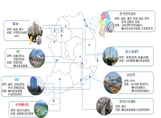 예를 들어 주택, 빌딩, 상가, 공장 등의 전력 사용 패턴을 분석하고, ICT 기반의 에너지 관리 솔루션을 접목해 효율적인 전력 소비를 유도하거나, 기존 전력망에서 공급받은 전력과 함께 태양광 등 분산전원과 ESS를 활용해 자체 생산한 전력을 가격이 비싼 시간대에 사용해 전력사용량을 5~10% 절감할 계획이다.