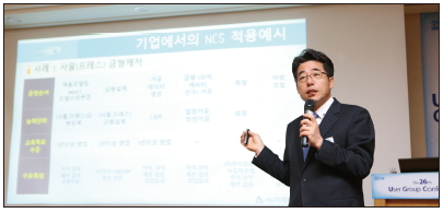 계속되는 발표세션에서는 한국델켐의 김광연 상무이사가 ‘NCS기반 과정평가형자격제도와 한국델켐의 인력양성정책’을 주제로 심도 있는 발표가 이어졌다. 김광연 상무이사는 사출금형 제작과 절삭가공제품 제작 분야에서 NCS 적용예시와 과정평가형 자격제도 구성사례를 자세하게 설명했다.