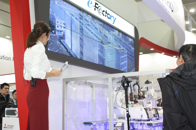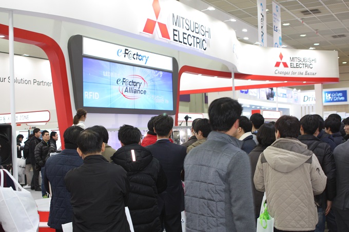 이번 전시에서 한국미쓰비시는 FA-IT 통합 솔루션을 선보였다. ‘e-F@ctory’는 사람, 기계, IT가 협조해 효율적이고 유연한 차세대 제조를 실현한다.
