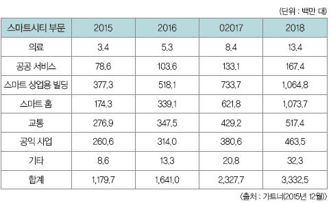 ▲ 표 1. 스마트시티 부문별 사물인터넷 설치 현황