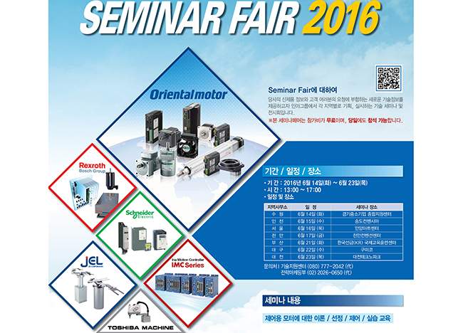 인아오리엔탈모터는 'Stepping Motor(스테핑 모터) 한 눈에 이해하기'라는 테마로 제어용 모터에 대한 이론, 기구부에 따른 선정, 모터 제어․실습 시간을 갖는다. 인아코포는 자사가 취급하는 브랜드 'JEL'과 'TOSHIBA'의 로봇을 소개한다.