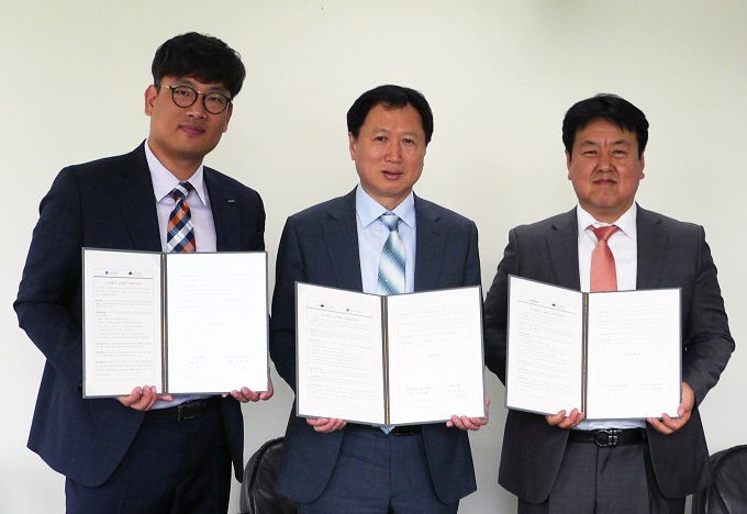 ▲ 지멘스 PLM 소프트웨어 코리아는 설계 소프트웨어 기업 오코텍, 대전대학교와 스마트팩토리 교육훈련을 위한 산학협력을 체결했다 (왼쪽에서부터 순서대로 오코텍 코리아 이영진 대표, 대전대학교 HRD 사업단 단장 박계홍, 지멘스 PLM 소프트웨어 코리아 정준모 이사)