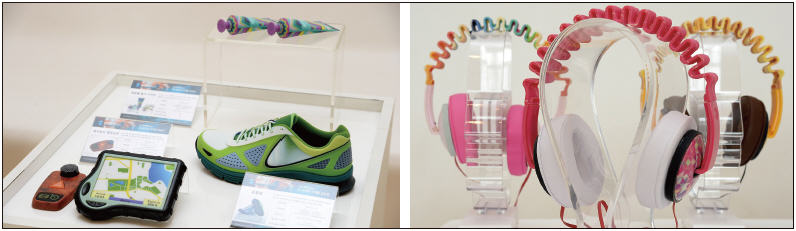 ▲ 신제품 J750 3D프린터로 출력한 모델과 이노디자인과 협업해서 프린팅한 시제품
