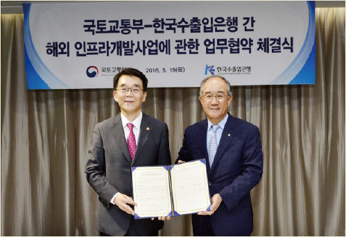 이를 위해 국토교통부는 한국수출입은행과 지난달 19일 여의도 글래드호텔에서 해외 인프라 개발 사업에 관한 업무협약을 맺었다.