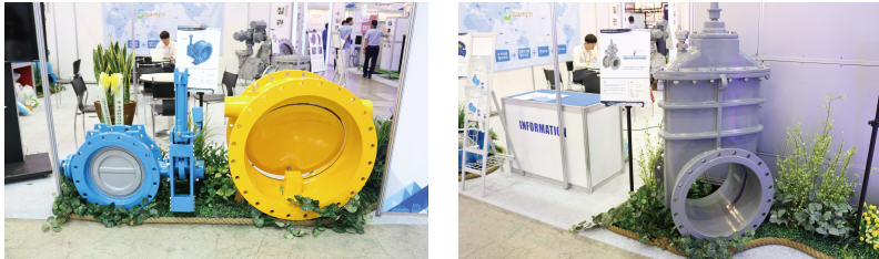 올해 국제환경산업기술 & 그린에너지전에 참가한 삼진정밀은 다양한 밸브류를 선보였는데, 그중에서도 공기 밸브 부착형 제수 밸브의 경우 양면 소프트 실 제수 밸브에 공기 밸브를 부착함으로써 관로의 공기를 원활하게 배출할 수 있어(75mm 공기 밸브 성능) 별도의 공기 밸브 설치가 필요 없다.
