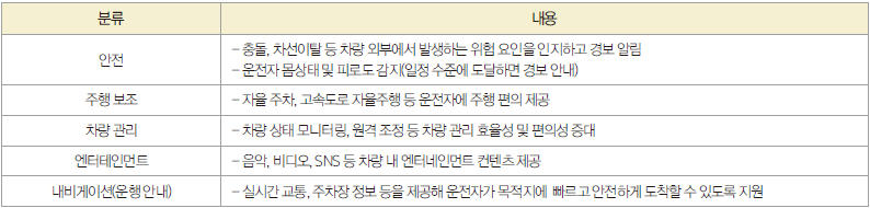 ▲표 10. 커넥티드카 주요 제공기능 <출처: PwC>