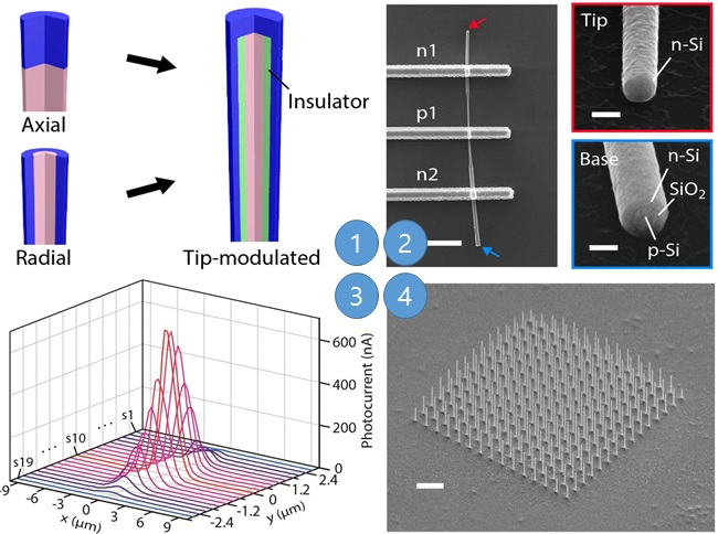 그러나 높은 민감도를 보유한 채 단일 세포 내의 특정 영역만을 선택적으로 접근하여 신호를 감지하는 극미세 나노선 센서의 구현은 여전히 어려웠다. 이에 박홍규 교수팀은 실리콘 나노선의 한 쪽 끝단에만 반도체 p-n 접합을 형성해, 나노선의 p-n 접합을 통해서만 특정 영역에서 전기 혹은 광 신호를 검출하는 새로운 형태의 나노선 센서를 개발했다.