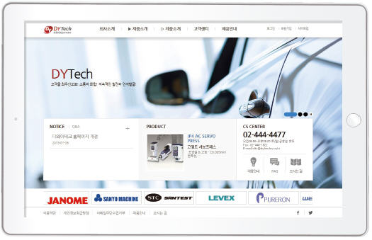 디와이테크에서 다루고 있는 자노메(JANOME)의 친환경 소형 서보프레스(JPS AC SERVO PRESS)는 슬림한 본체와 콤팩트한 컨트롤러를 갖고 있어 여러 대의 프레스를 설치하는 설비 공간을 최소화해 주므로 효율적으로 설계할 수 있다. 또한 기본 디지털 입출력, RS-232C, 이더넷 탑재 등 인터페이스가 충실하며 다양한 제어, 풍부한 판정 기능도 보유하고 있다.