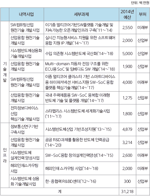 ▲ 표 1. 시스템반도체 관련 정부 지원사업(2014년 기준)