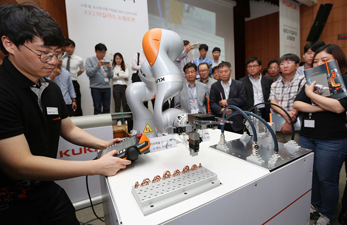 또한 지난해 출시한 인간 협업 로봇 LBR 이바의 산업 현장에서의 적용 사례를 소개하며 현장 시연도 진행됐다.
