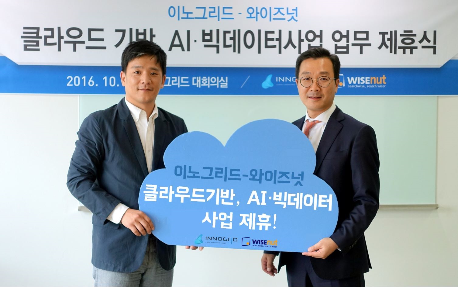 클라우드 컴퓨팅 전문기업인 이노그리드는 자사 클라우드 IaaS 솔루션(클라우드잇)과 인공지능(AI) 기반 빅데이터 검색•분석 기술을 융합해 빅데이터 사업을 위한 파트너로 지능정보소프트웨어(SW)전문기업 와이즈넛과 공동 기술개발 및 전략적 사업 제휴를 맺었다.