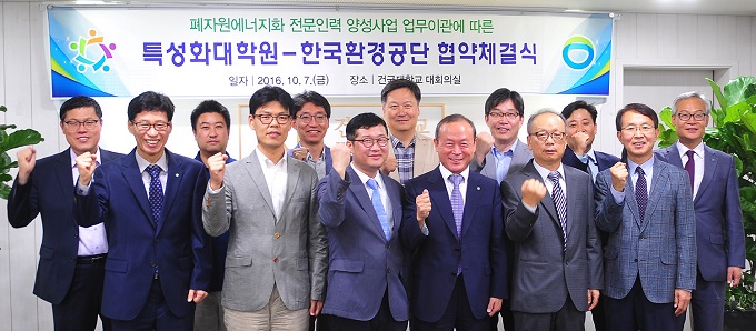 한국환경공단은 폐자원 에너지화 산업을 선도할 전문인력양성과 교육기반 구축을 위해 건국대 외 7개 대학과 ‘폐자원 에너지화 특성화 대학원’ 사업 협약을 맺었다고 11일 밝혔다.