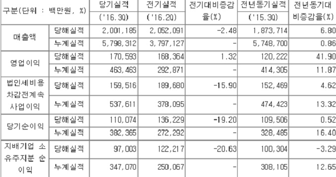 ▲ 삼성SDS 2016년 3분기 매출실적 [사진=삼성SDS]