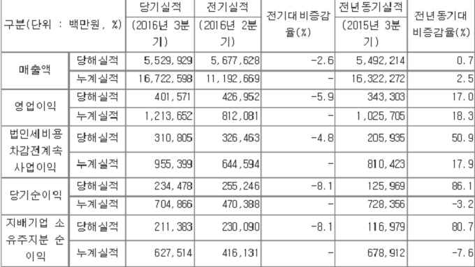 ▲ KT 2016년 3분기 매출실적 [자료=KT]