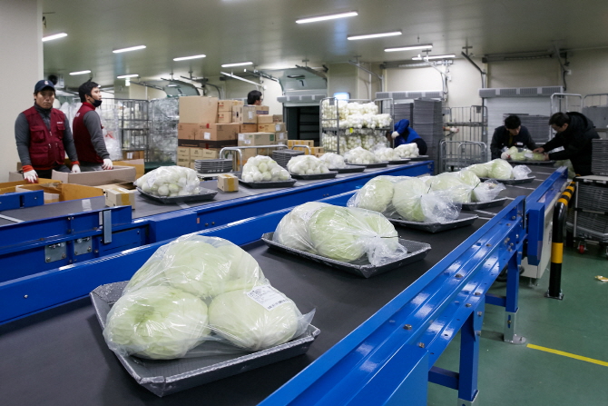 이번 공급으로 아워홈은 동종업계 최초로 식자재에 특화된 자동분류시스템을 보유하게 됐다. LG CNS 식자재 분류 소터는 비닐로 쌓여있는 파·배추, 통조림 캔, 쌀 포대자루 등 겉모양이 일정하지 않은 다양한 식자재를 바코드로 인식, 주문 배송처 별로 자동 분류하는 물류 설비다.
