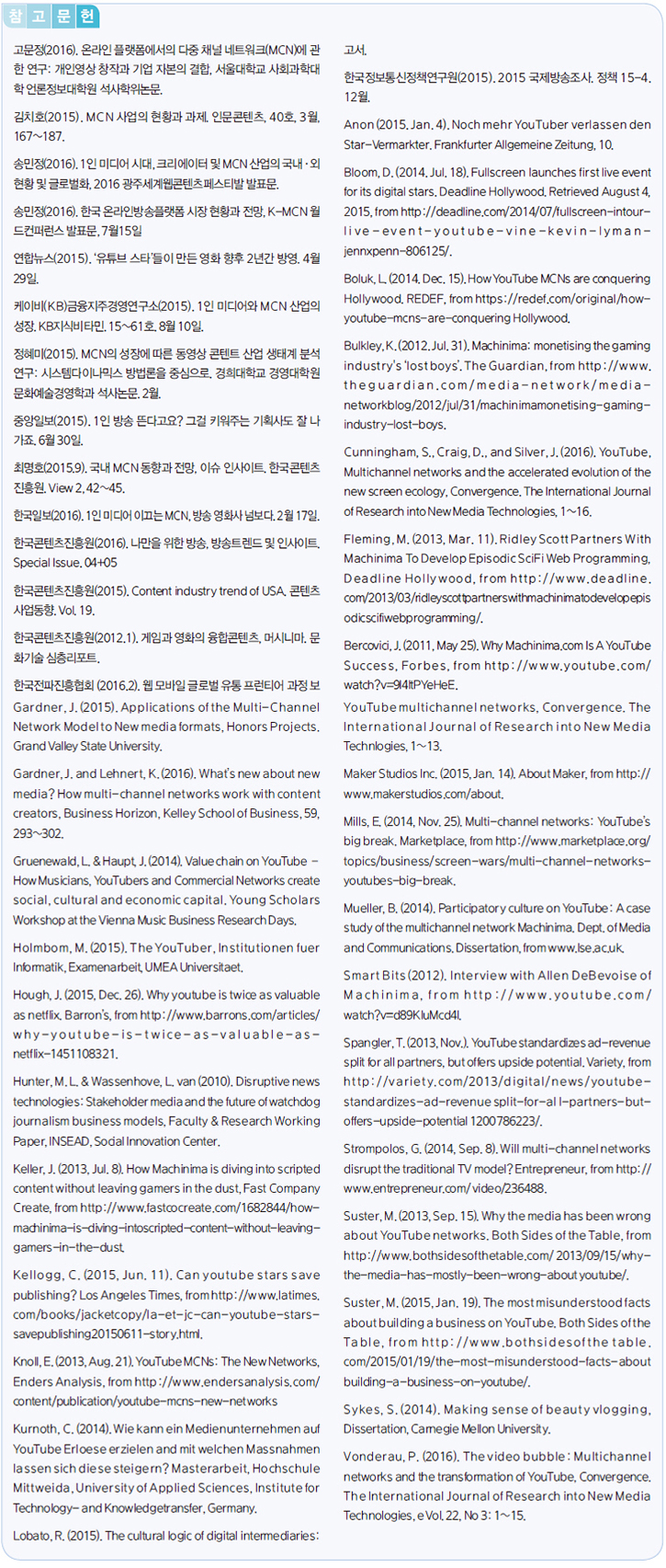일례로 풀스크린미디어는 낮은 월정료에 월 800시간 분량 콘텐츠를 즐길 수 있는 OTT를 내놓았고, 메이커스튜디오즈도 이보다 2년 먼저 출시한 ‘메이커TV’를 통해 자체 제작한 PGC를 독점 제공하고 유튜브에는 유통하지 않는 배타적 콘텐츠 배급 전략도 추진했다. 이는 이들이 MCN으로 출발했지만 유튜브 같은 플랫폼 기업으로 발전할 수 있음을 의미하며, 동시에 전통 미디어 기업과 유사한 방송 유통플랫폼 모델을 그대로 따를 것임을 시사한다.
