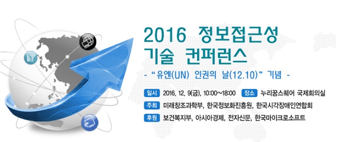 미래창조과학부, 한국정보화진흥원, 한국시각장애인연합회 공동으로 주최한 ’2016 정보접근성 기술 컨퍼런스’가 유엔(UN) 인권의 날을 기념하여 9일 서울 상암동 누리꿈스퀘어에서 개최됐다.