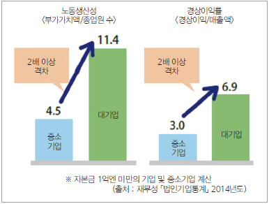 특히 제조 중소기업에서는 경상 이익률과 노동 생산성에서 대기업과 비교해 약 2배 이상의 격차가 있어 생산성 개혁에 임하는 필요성은 높다고 여겨진다.