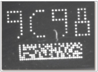 ▲ 그림 6. PCB 기판 위의 도트핀 방식의 다이렉트 마킹된 DPM 바코드의 판독 예