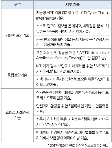 ▲ 표 2. 2017년 산업체가 주목해야 할 정보보호 10대 기술