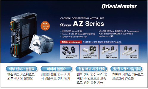 또한, 신뢰성 높은 오리엔탈모터만의 Closed Loop 제어 방식에 의한 뛰어난 기술력을 계승하면서 시퀀스(Sequence) 기능, 각종 모니터 기능 등에 이용할 수 있다. 현재 AZ 시리즈의 특징을 살린 다양한 제품이 출시됐으며, 지속적으로 확대할 계획이다(그림 8).