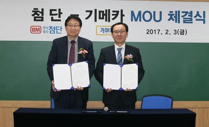 (주)첨단(대표 차남주)과 (주)기메카(대표 이준원)는 3일 서울 서교동에 위치한 기메카 교육장에서 안전보건 사업 협력에 관한 업무협약(MOU)을 체결했다.
