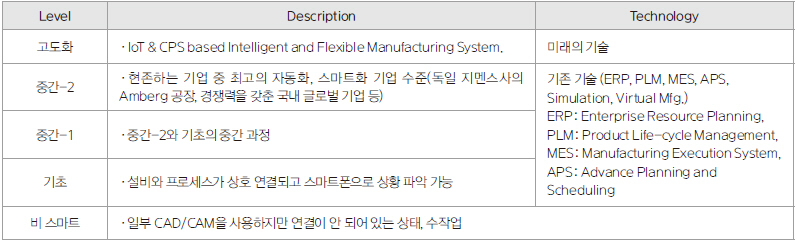 ▲ 표 2. 스마트공장 추진단이 정의한 스마트공장의 수준 구분