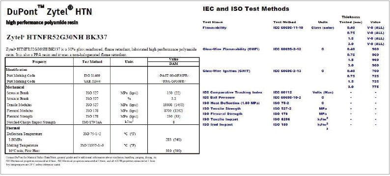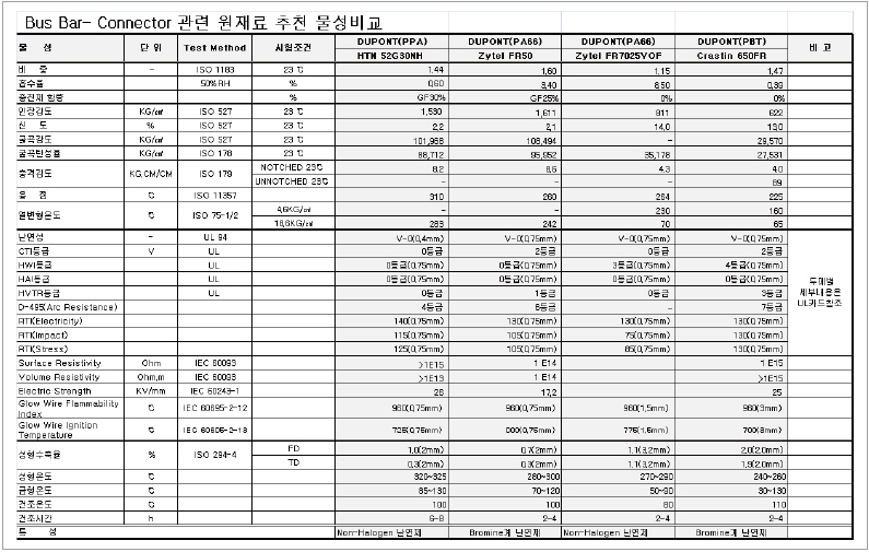 ▲ 표 1. 엔지니어링 플라스틱의 물성치와 UL1977 Type4의 조건치