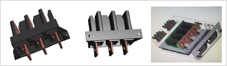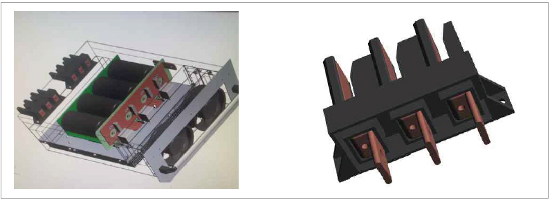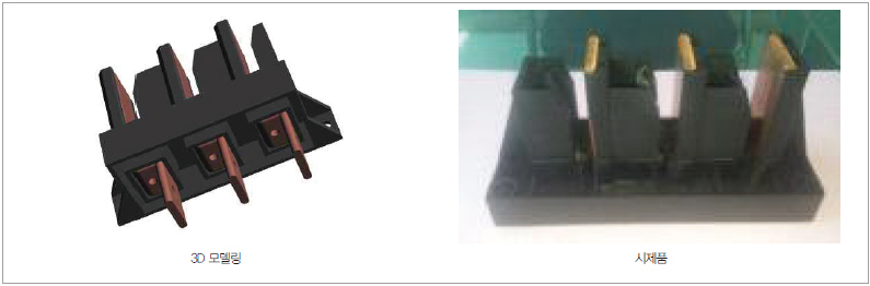 ▲ 그림 4. 버스 바를 인서트하여 플라스틱 사출성형한 커넥터 터미널의 3D 모델링