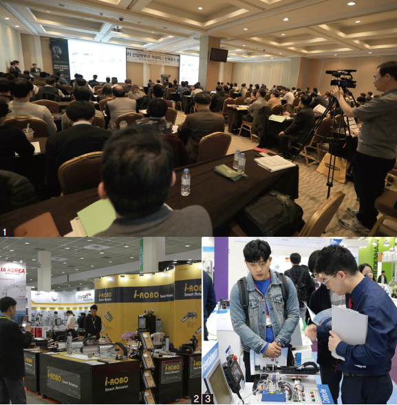 ① 로봇을 활용한 중소 제조공정 혁신 방안과 사례를 주제로 열린‘제4차 산업혁명과 로보틱스 컨퍼런스 2017’ 현장.
