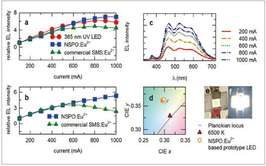 광체는 고출력 조건(800 mA 이상)에서도 빛의 세기가 유지되는 것을 확인하였다. UV LED와 형광