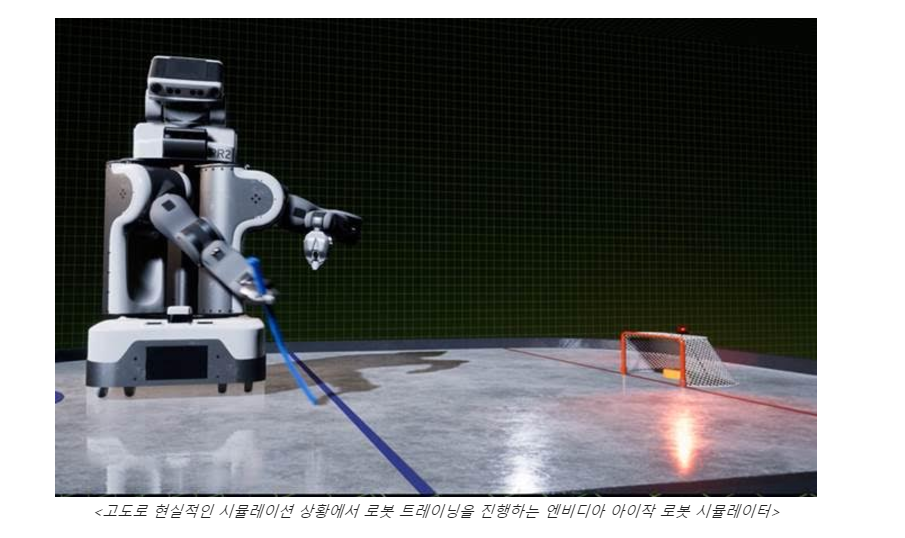 엔비디아 아이작 로봇 시뮬레이터는 인텔리전트 머신이 실제 배포 되기 전, 첨단 비디오게임 및 그래픽 기술을 기반으로 시뮬레이션 된 현실 세계 조건(real-world condition)에서 머신을 트레이닝 할 수 있는 기술이다.