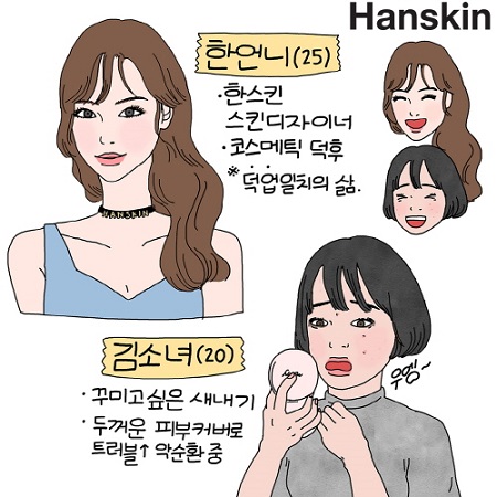 한스킨과 임유끼의 컬래버레이션 뷰티툰은 스킨디자인웍스(피부 디자인 연구소)에서 스킨 디자이너로 일하고 있는 ‘한언니’라는 캐릭터를 중심으로 해 많은 20~30대 여성들의 피부 고민에 관련된 유용한 뷰티 팁을 전달하고 한스킨 브랜드와 제품을 소개하는 내용으로 진행될 예정이다.