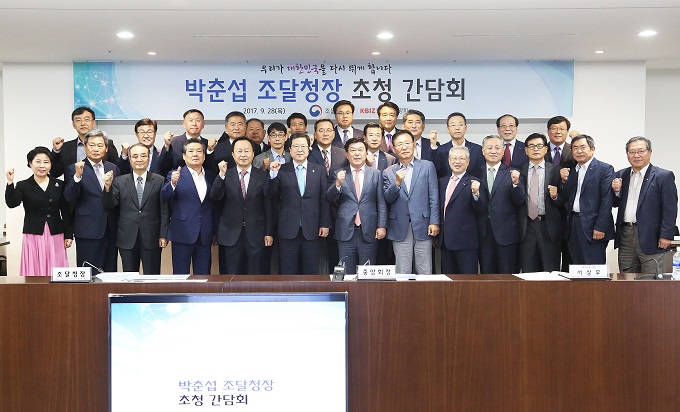 중소기업중앙회(회장 박성택)는 지난 28일(목) 여의도 중소기업중앙회에서 박춘섭 조달청장을 초청하여 중소기업계와의 간담회를 개최했다.