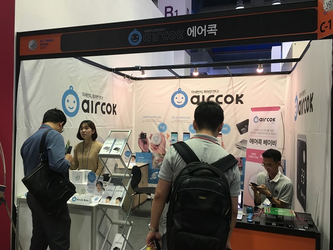 이쓰리(www.aircok.com)가 10월 11일(수)부터 13일(금)까지 개최되는 ‘2017년 사물인터넷 국제전시회’에 참가하여 휴대용 미세먼지 측정기 ‘에어콕(aircok)’을 선보였다.