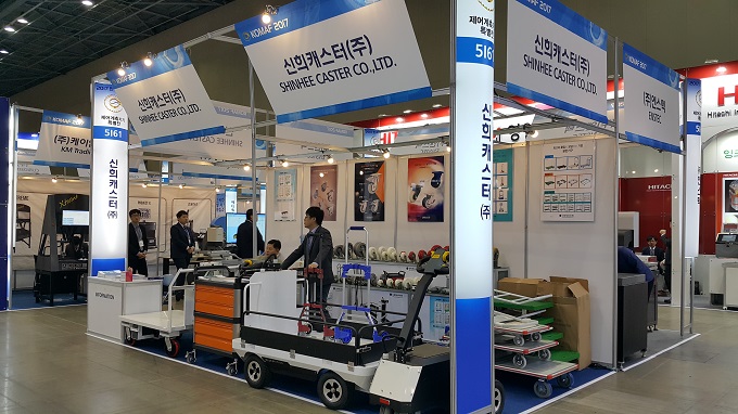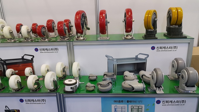 신희캐스터는 전동 카트와 함께 다양한 종류의 캐스터도 선보였다.