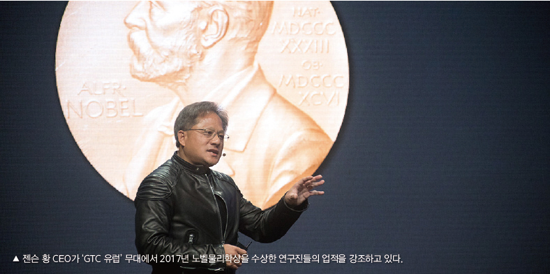 또한 젠슨 황 CEO는 물리학 및 화학 분야에서 노벨상을 수상한 연구팀을 축하하면서 중력파의 존재를 확인하고 신체 세포의 내부 작용을 간파해낸 세계의 상상력에 찬사를 보냈다. 이어서 그는 “혁신을 가능하게 하는 것이 엔비디아의 궁극적인 목적”이라며 “지난 주, 엔비디아가 많은 공헌을 한 연구 분야에서 두 명의 노벨상 수상자가 발표되었을 때에 우리가 느꼈을 기쁨을 상상해볼 수 있을 것”이라고 말했다.