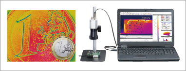 현미경 렌즈를 장착한 적외선 카메라는 특히 시험 및 측정범위에서 간단하게 초점을 조절할 수 있는 고품질의 테이블 거치대가 세트로 포함되어 나온다. 카메라는 USB를 통해 컴퓨터로 연결되며 매우 신속하게 켜진다. 적외선 카메라가 갖춘 고성능의 열상 및 기하학적 해상도를 통해 아주 미묘한 온도변화도 인식할 수 있으며, 이로 인해 전기제품에 대해 효과적이고도 정밀한 기능시험을 할 수 있다.