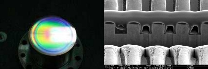 ▲ 비구면에 미세패턴 가공을 한 제품 모습 및 단면