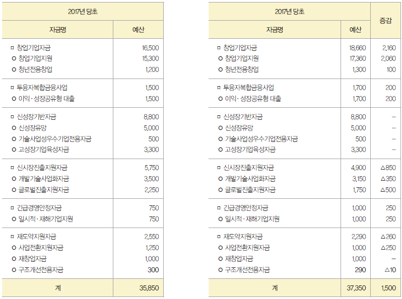▲ 표. 2018년도 중소기업 정책자금 현황