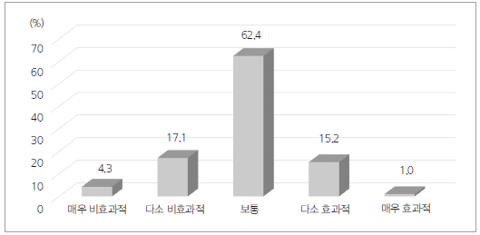 기업들은 정부의 수출 지원정책에 대해 큰 만족감을 드러내지는 않았다. 조사 결과 수출 강소기업 육성을 위한 지원정책 효과에 ‘보통’이라고 응답한 기업이 62.4%를 차지했다. 반면, 수출 강소기업 지원정책의 성과를 비효과적으로 평가한 기업은 21.4%로 효과적이라고 응답한 비율(16.2%)보다 높은 것으로 나타났다.