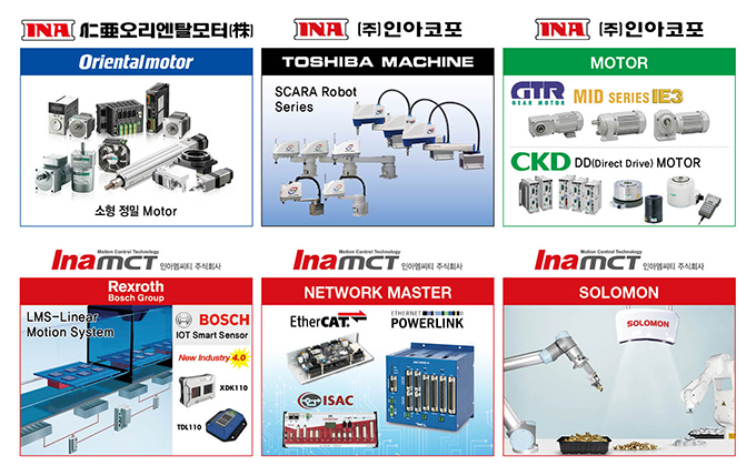 스마트 팩토리 솔루션 전문기업 ‘인아그룹’은 소형 정밀 모터 전문기업 ‘인아오리엔탈모터’, 자동화 분야의 전문 부품 기업인 ‘인아코포’, 디스플레이 및 반도체 장비 제조 전문기업 ‘인아텍’, 모션 제어 및 시스템 솔루션 설계·제작 전문기업 ‘애니모션텍’, 모션 컨트롤 전문기업 ‘인아엠씨티’까지 총 5개 계열사로 구성돼 있다. 이번 전시회에는 인아오리엔탈모터, 인아코포, 인아엠씨티가 참가한다.