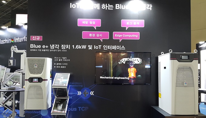 1961년에 설립된 리탈(RITTAL)은 SIMTOS 2018에 참가해 냉각 장치 시리즈 ‘Blue e+’를 선보였다. 이 장치는 속도 제어식 구성품과 히트 파이프(Heat Pipe) 기술로 최대 75%의 에너지를 절감하고, 다전압 수용 능력으로 국제적 사용에 적합하며, 구성품 친화적인 냉각으로 인클로저 및 냉각 장치 내부의 모든 구성품 수명이 연장된다. 또한 터치스크린과 지능형 인터페이스로 직관적 작동이 가능해 사용자 편의성이 높다.