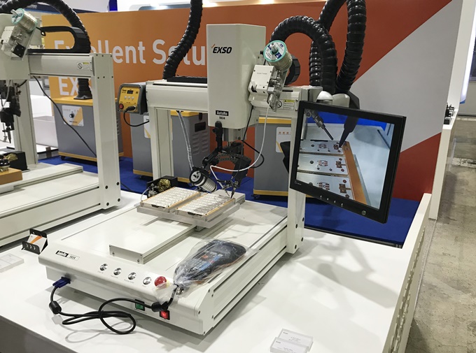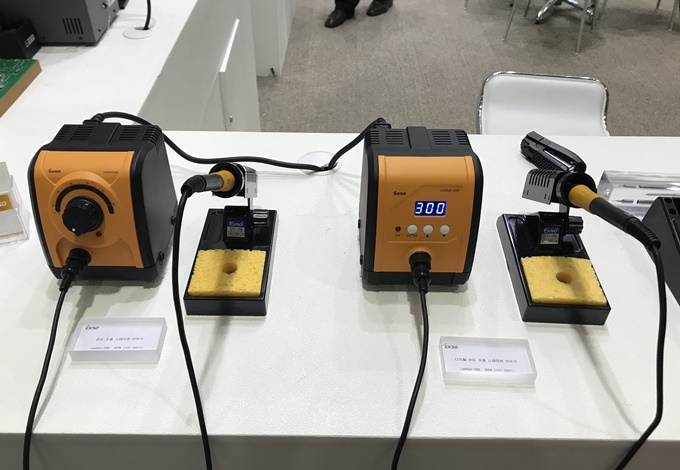 납땜 인두, PCB 관련 장비 전문기업인 엑소(EXSO)는 4월 11일부터 13일까지 서울 삼성동 코엑스에서 개최된 제 19회 ‘SMT/PCB & NEPCON KOREA(국제 표면실장과 인쇄 회로기판 생산기자재전)에 참가해 합리적인 가격대와 설치가 용이한 자동 납땜 로봇과 기존 산업용 제품과 차별화된 기능뿐 아니라 디자인까지 우수한 인두기 등을 선보여 주목받았다.